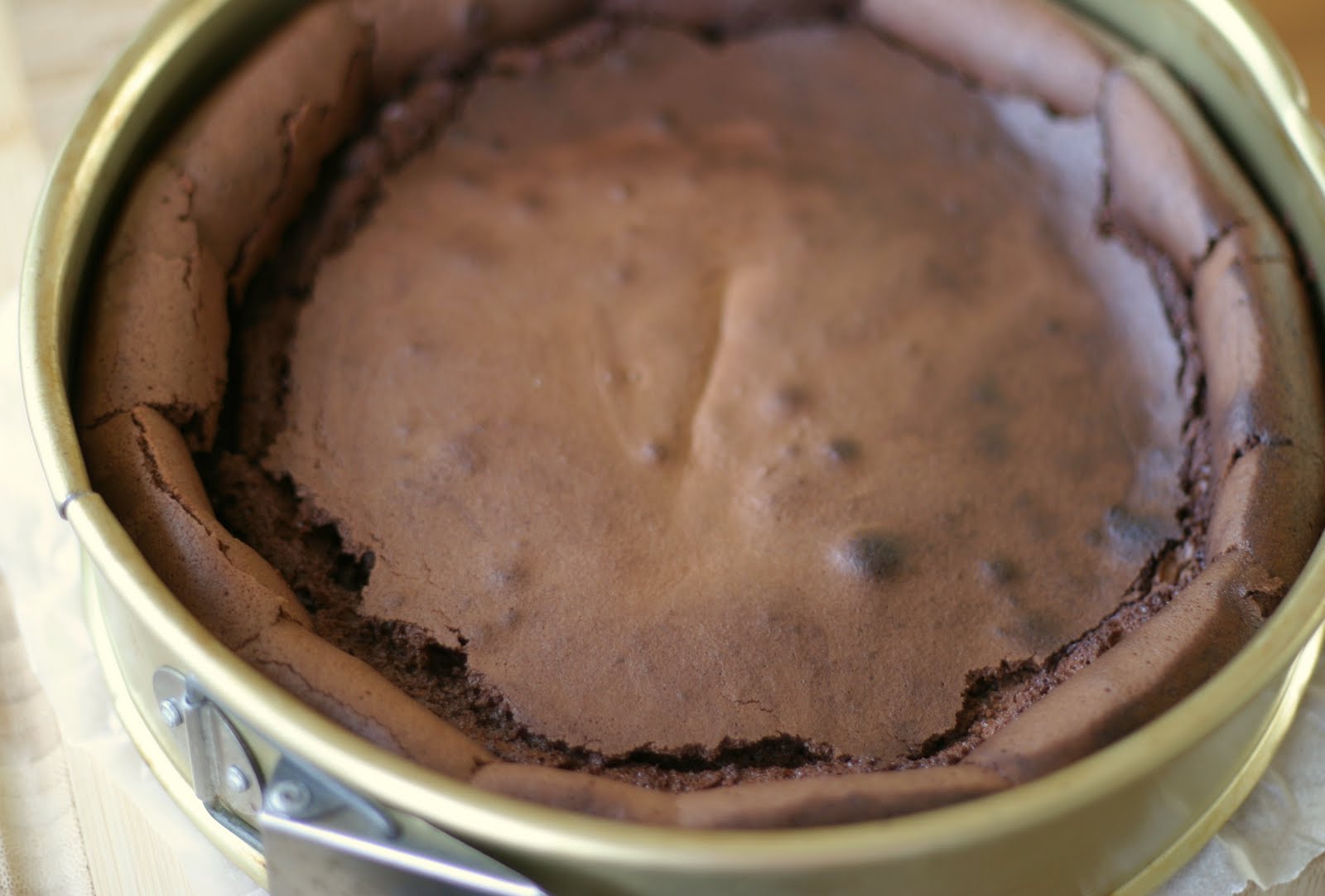 Bring out a springform cake tin (about 23-24 cm diameter), line the bottom with baking paper. Do not butter the sides.